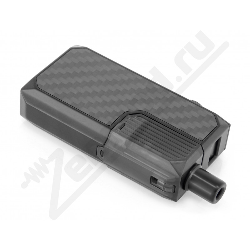 Прямоугольный корпус Narada PRO Kit выполнен из цинкового сплава, в качестве декоративного элемента выступают боковые вставки под карбон. Габариты устройство получило относительно скромные: 82х40х19 мм, для пода многовато, но в руке почти полностью скрывается. Вес тоже небольшой, всего 129 грамм, так что отягощать карман модик не будет, а сверху классический 510 дриптип, это очень хорошо.